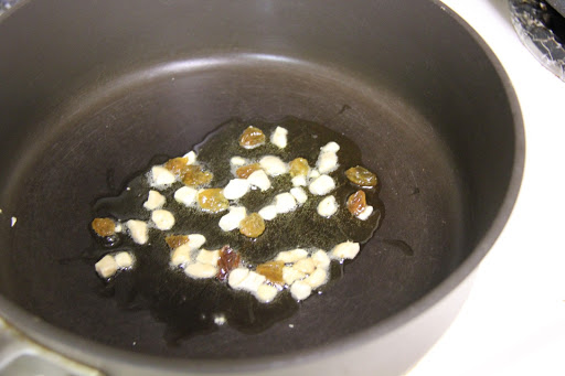 2.In a table spoon ghee roast cashews and raisins and keep aside.