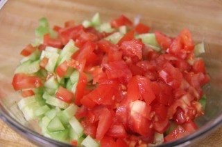 Do not keep the salad outside for too long or let it stand too long.The tomato and cucumber start leaving out water due to the salt added and it won’t feel as fresh as a newly made salad.
