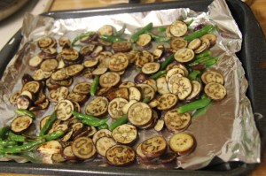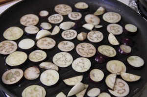 3.Once the eggplant is charred well remove from stove, transfer to a baking sheet and bake for about 20-30 minutes.