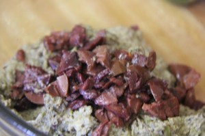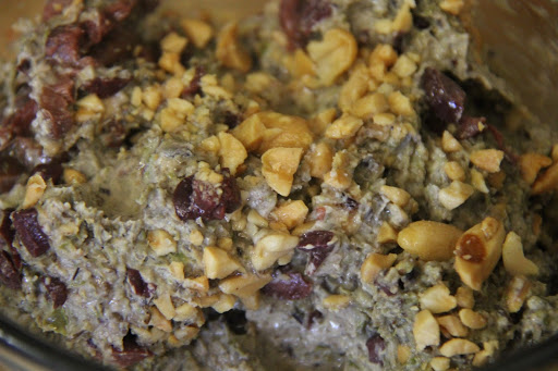 5.Take this mixture into a bowl and add chopped olives and peanuts and keep aside.