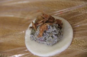 You want the stuffing to be on a spicy side because the puff pastry will subside the spice in the mixture when you bite.