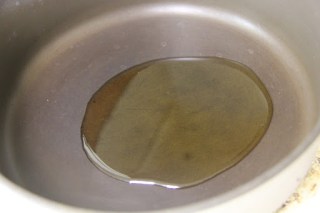 1.In a pan, pour in the olive oil with the stove heat set to low.