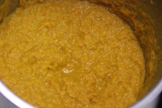 3.Add the minced garlic and red peppers to saute for one more minute and puree them in a grinder.