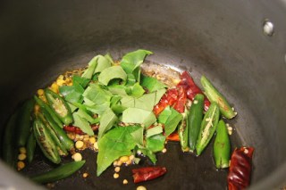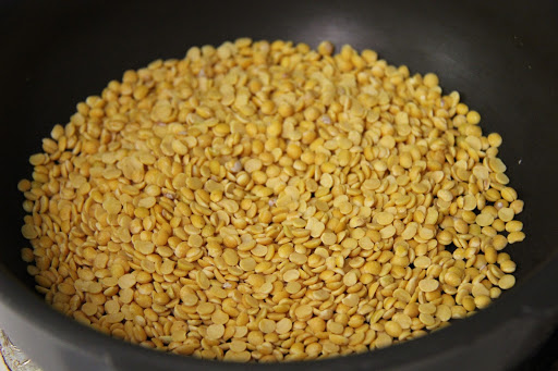 1. Heat oil in a pressure cooker. Add Chana Dal and Urad Dal and roast until they are light brown.