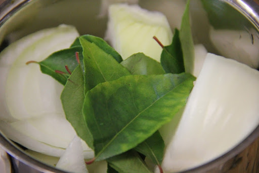 4.Grind the onions and curry leaves into a fine paste and keep aside.