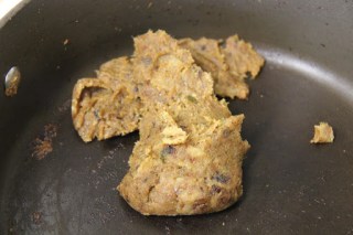 4. Heat oil in a pan, add onion curry leaves paste and saute continuously on medium for 20 minutes until it reaches golden color. If you are a beginner, use chopped onions. Onion paste needs patience to cook properly or it will spoil your entire dish.