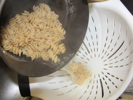3.Boil 2 cups of water, add a little salt and cook the pasta in it until it is cooked but not too soft. Drain the water.