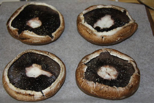 2.Rub each Portobello mushroom with 1 teaspoon of olive oil, salt and pepper and keep aside.