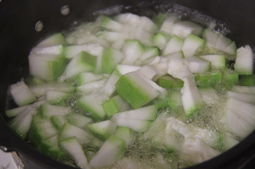 1.Pressure cook bottle gourd pieces/sorakaya mukkalu in 2 cups of water and salt for 3 whistles and let cool.