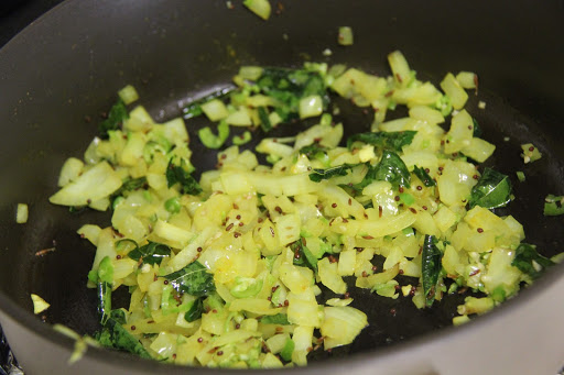 2.In a pan heat some oil and on a medium flame add cumin and mustard seeds and curry leaves and let splutter.