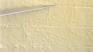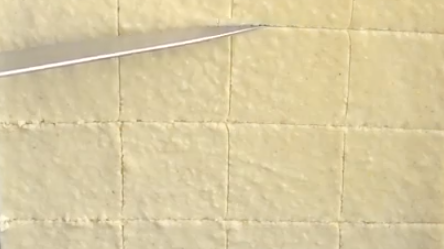 4.After 1 hour cut the mixture into slices(you can also cut it after baking and skip the refrigeration step) and lay the blanched almonds on top and