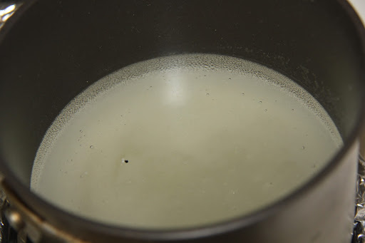 6.Meanwhile take 2 cups of sugar and 2 cups of water in a pan and let boil for 10 minutes and add the lemon juice and orange blossom water and turn off the stove.
