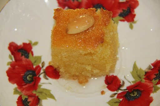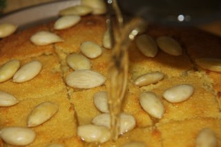 If serving for people with nut allergies serve plain without the almonds ,the almonds can be dipped in the syrup and toasted separately in the oven for 10 minutes and topped to the basbousa for those without the nut allergy.