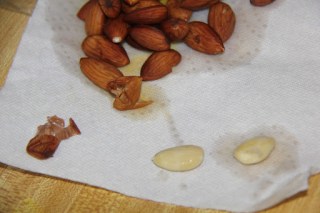 2.Drain the water and transfer the almonds onto kitchen towel.With hand or with tissue skin the almonds.