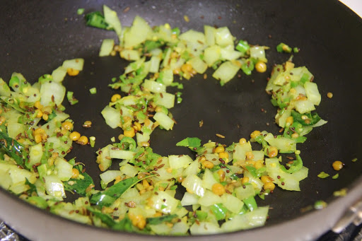 3.Add mustard seeds, cumin seeds,turmeric and curry leaves and let splutter.