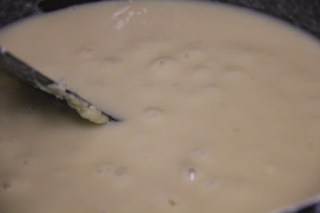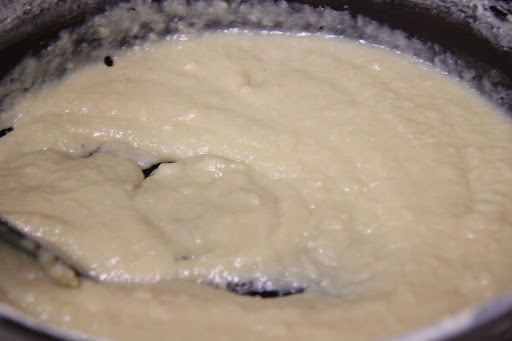 5.The mixture will start bubbling. Once the bubbles disappear that is when the kova is ready.