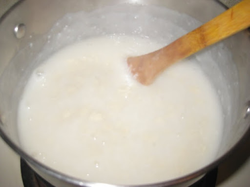 3.Add coconut milk and reduce the flame and keep stirring until the mixture thickens slightly.