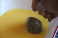 For the burgers or meatballs just shape them to patties,roll them in a beaten egg,coat them with breadcrumbs and line them on the baking sheet and bake for about 40 minutes.