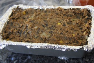5.Heat the oven to 350 degrees.Grease a loaf pan and transfer the mixture to the pan and bake for about an hour until it gets firm.