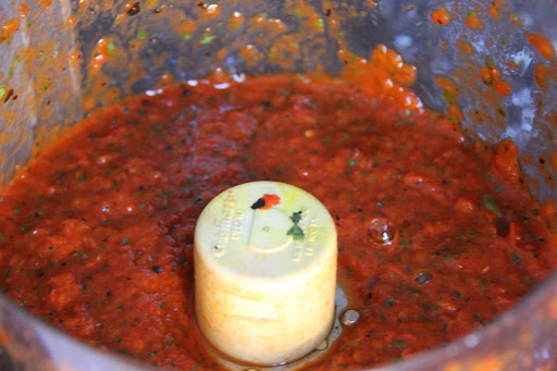 3.Deseed the red pepper and transfer to a food processor and pulse with rest of the ingredients.