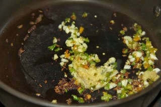 2. Add ginger,garlic and green chili and saute for 1 minute.