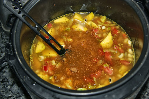 5. Add pumpkin and salt and cook for 2 minutes with lid covered.