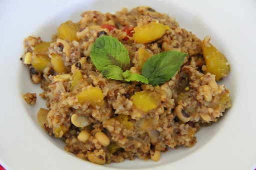 6.Add Cowpeas and sugar ,mix and cook with covered lid for 5 minutes .