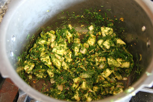 3.Add the dill leaves and saute for 1 minute.