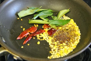 1. Heat 1 teaspoon oil in a pan and roast the peanut,green chili,2 red chili,putnalu until lightly brown.