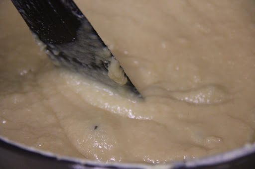 5.The mixture will start bubbling. Once the bubbles disappear that is when the kova is ready.