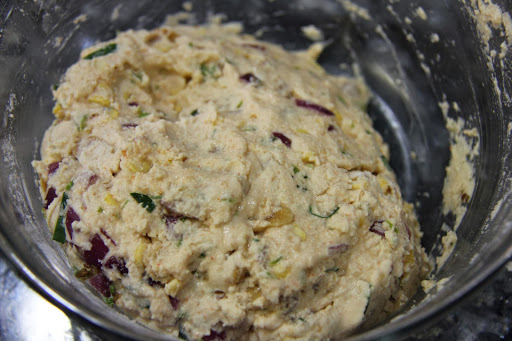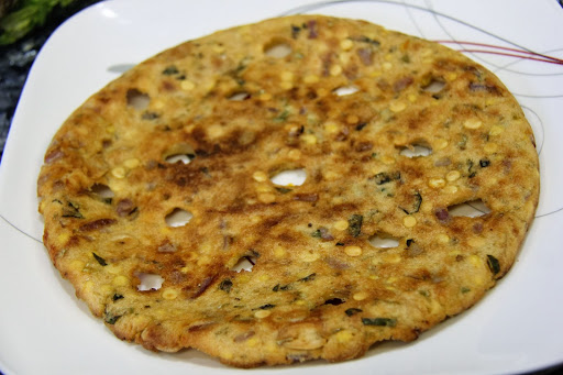 7.Make some holes with your finger and add a drop of oil in each of the holes, you can add more oil if you like crispier sarvapindi.