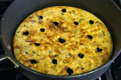 8.Turn on the stove and let cook with closed lid for about 10 minutes on medium flame.Check if the bottom side is browned.Then flip the appa and let cook on the other side for 5 minutes without the lid.Remove from pan and serve.Let the pan cool before making your next ginnappa.