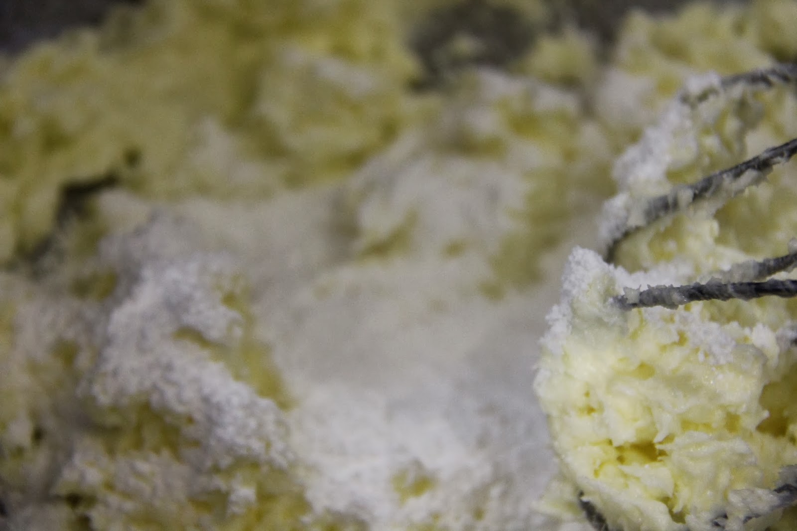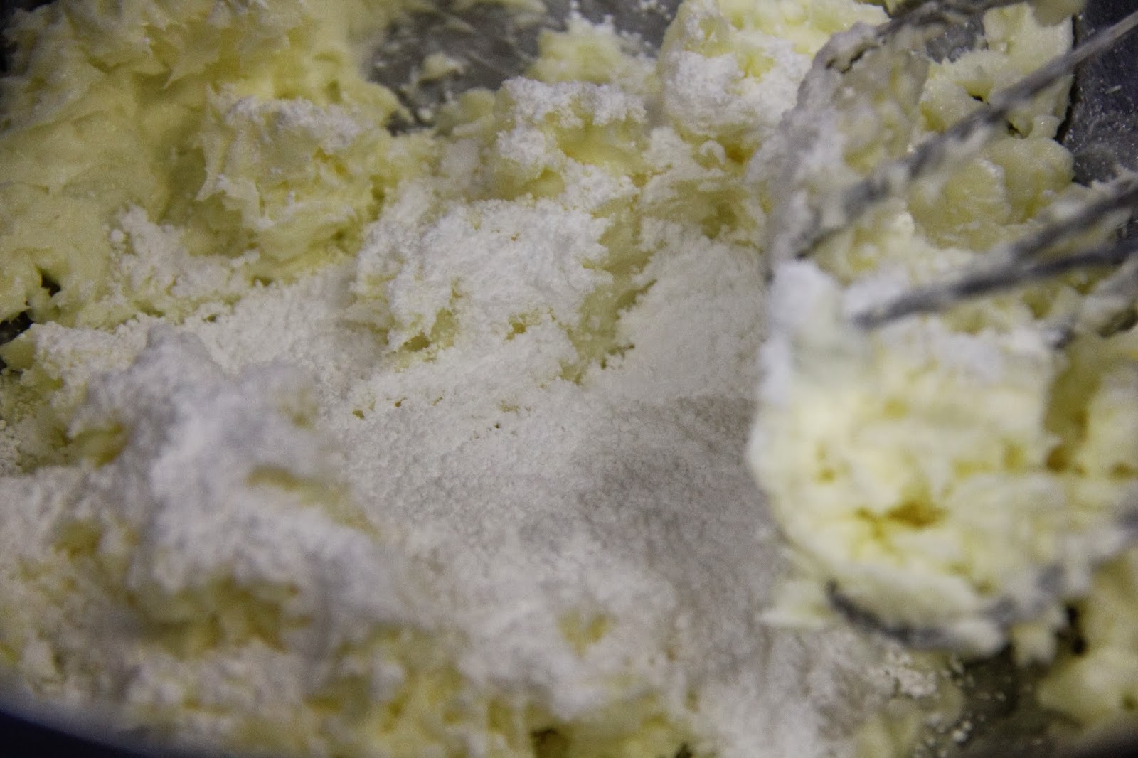 2.Whisk in Shortening and then add 1 cup at a time of powdered sugar and continue mixing until the mixture turns pale and creamy. Should not be too runny.