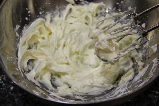 2.Add 1 cup at a time of powdered sugar and continue mixing until the mixture turns pale and creamy. Should not be too runny.