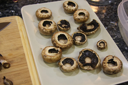 2.Remove the stems from the mushrooms and keep aside. Lay the mushrooms with the hollow side up on a plate.