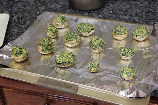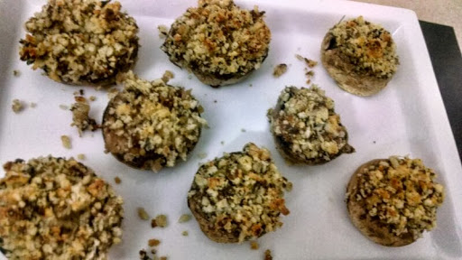 5.Place little mixture in each of the mushrooms and sprinkle little Parmesan cheese on top and bake in the oven for 20 minutes.
