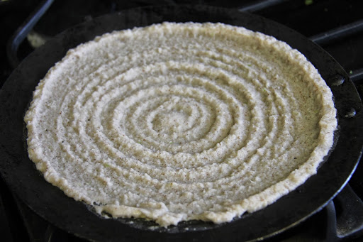 You can add grated carrot,green chili,ginger or finely minced onion on the pesarattu after rolling out the crepe on the pan for added flavor.