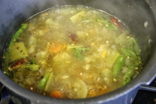 1.Pressure cook the vegetables in water enough to soak them and salt and pinch of turmeric for 1 whistle.