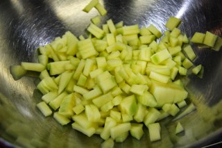1.Cut the raw mango into really small pieces, alternatively you can also grate the mango. Mix salt and keep aside.
