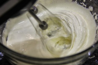 5.In a separate bowl whisk the egg whites to a soft peak stage.