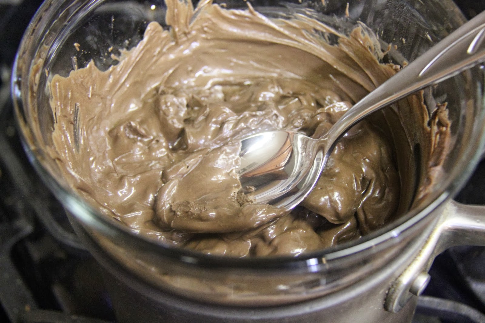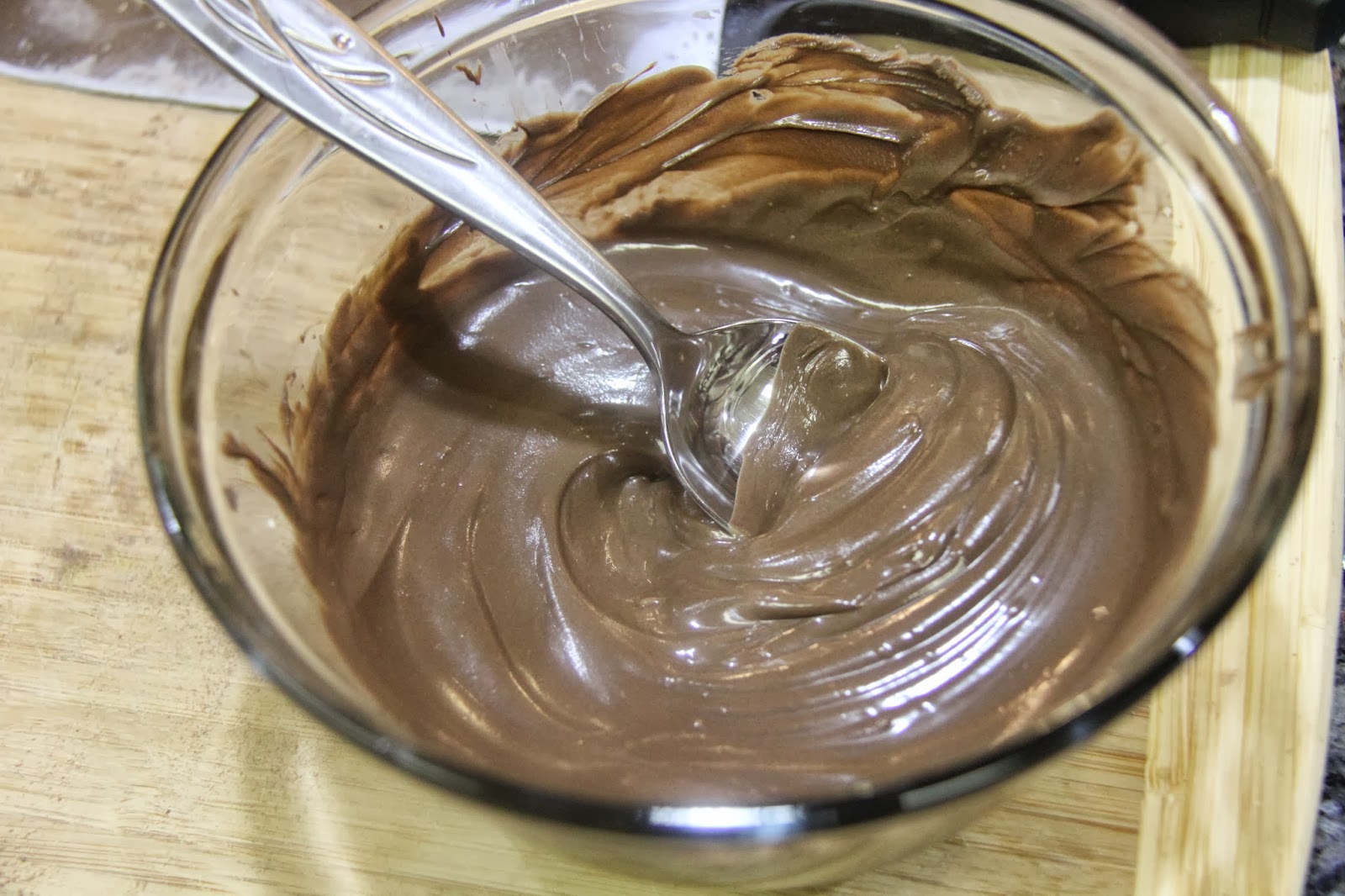 After pouring the chocolate you can swirl with a fork to form a cleaner pattern.I did not worry too much about design as it was a tea time cake.