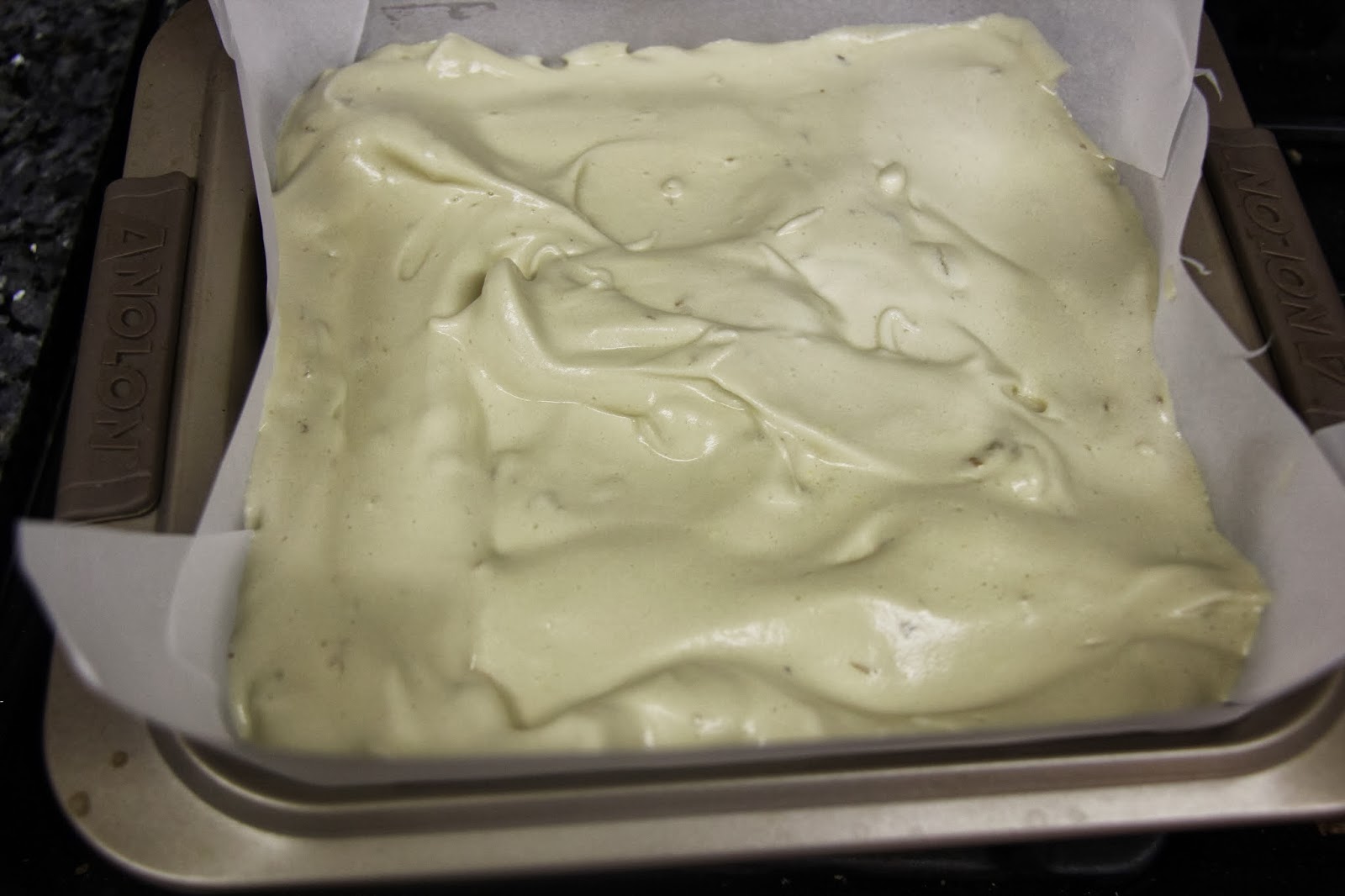 7.Transfer to cake pan ,spread evenly and bake for 18-20 minutes. It forms a light brown color on top.