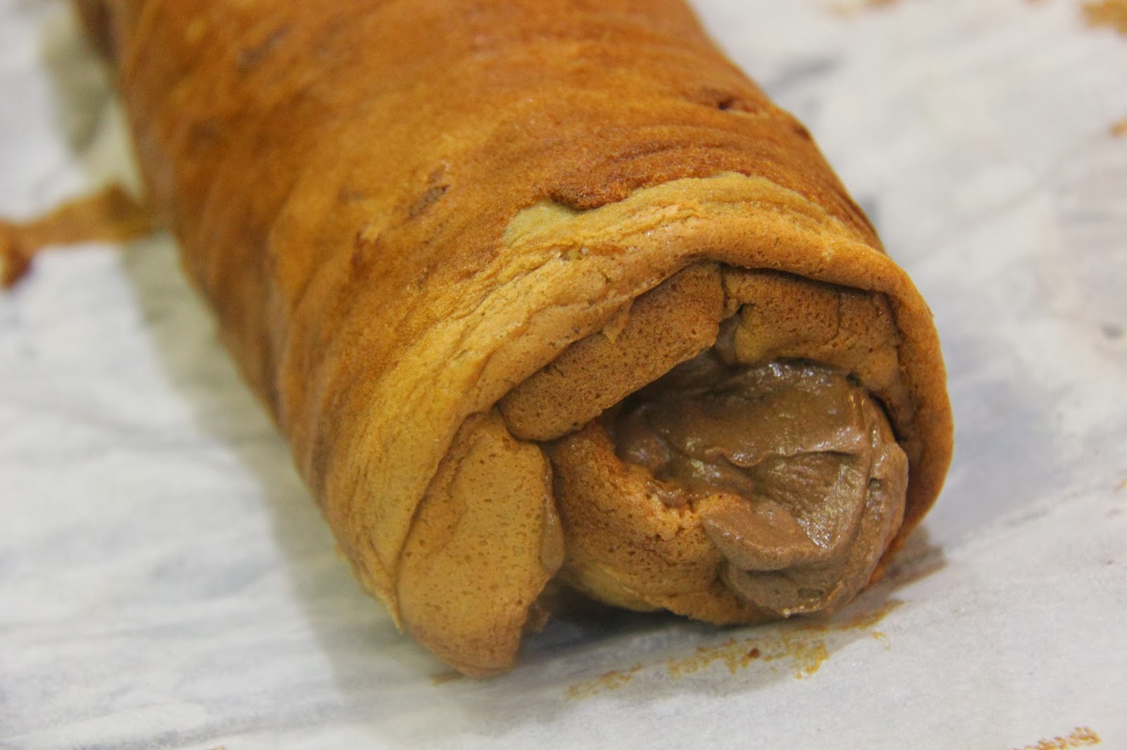 10.Roll the Piskota into a loaf.If you wish you can cut out the edges.