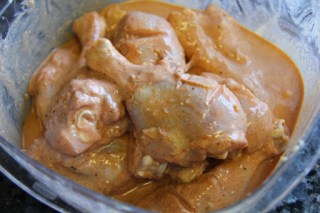 1.Combine all the powders in a bowl and add the yogurt, red color, salt, ginger garlic paste and juice of lemon and mix and coat the chicken pieces and let marinate for at least 4 hours in the refrigerator.