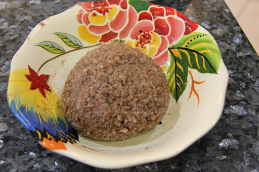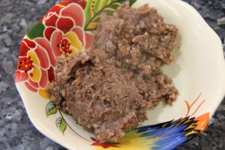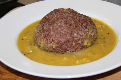This is a traditional preparation from Karnataka with finger millet flour and rice-also called as ragi sankati/ragi muddha. Traditionally it is only prepared with finger millet flour, but I find the texture rather unappealing and prefer this. Finger millet flour has a ton of nutritional benefits including control of diabetes and anemia, building and repair of muscle and bone tissue, also is known for slow release of carbs into blood thus keeping you full for longer periods.