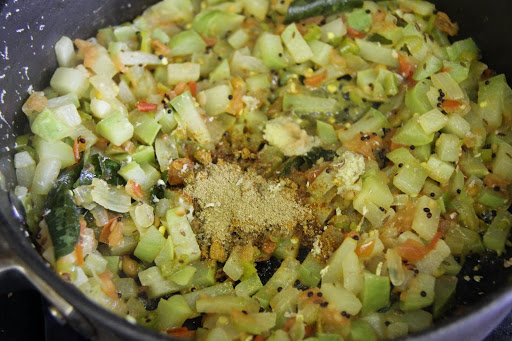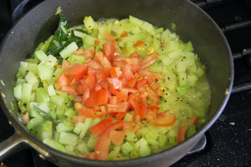 4.Add the tomato,mix and cook until the tomato gets soft.