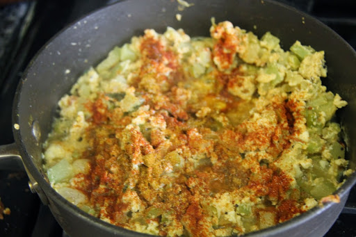 6.Add eggs and stir well till it separates into small pieces.If you need more spice add red chili powder and mix well,let cook for 2 more minutes and turn off the stove.