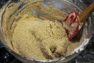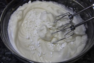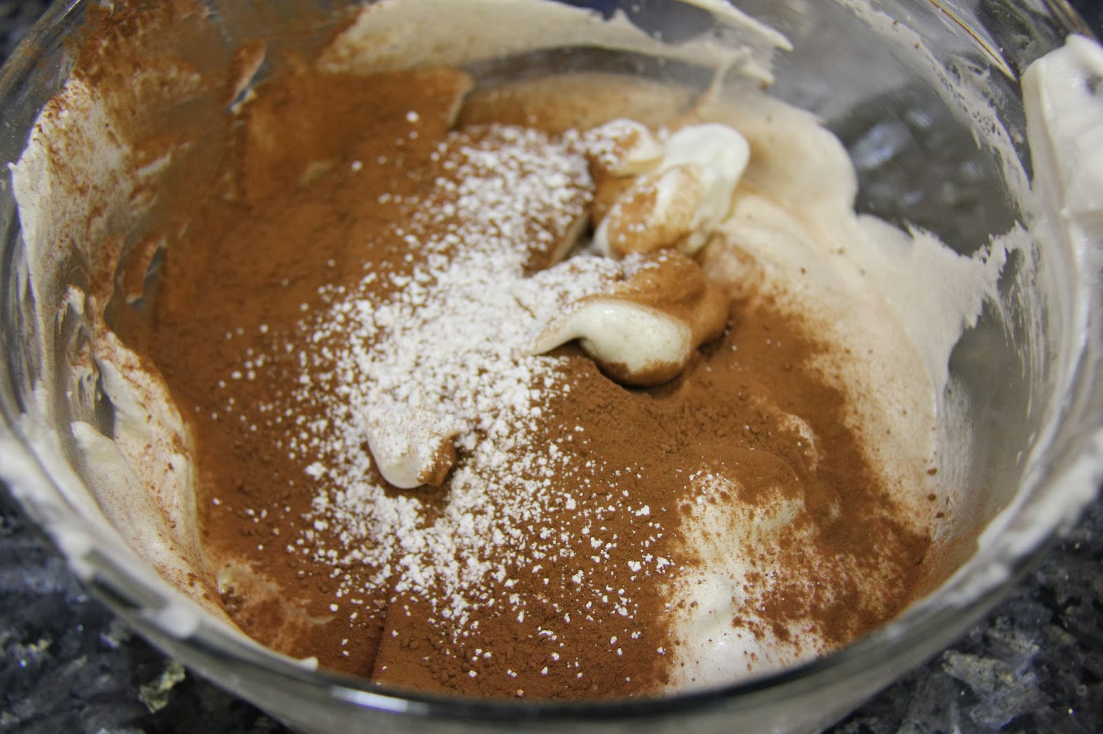3.Add sugar , almond extract and cocoa powder and combine well. Do not over whisk.