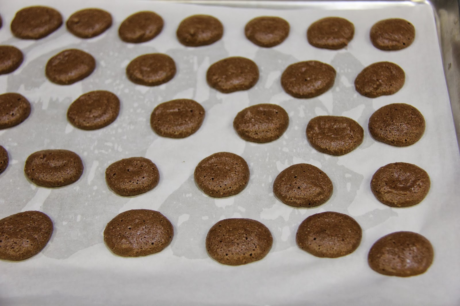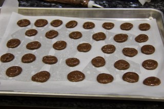 5. Pipe or spoon the batter onto the parchment paper. Let sit for 10 minutes.