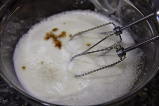 3.Add the vanilla essence and sugar 1/4 cup at a time until it is well combined. If you take a little in your fingers and rub them together you shouldn’t feel any granules.